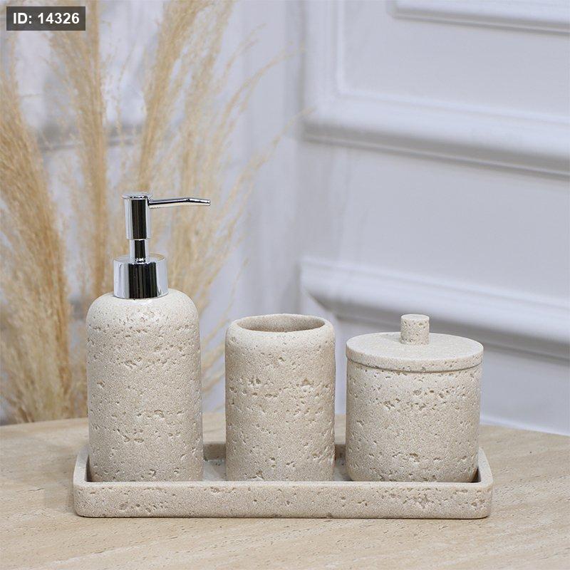 طقم /4 صينية مستطيل+مصبنة+ كاسة + علبة بغطا جبص بيج EL177/11 =ت.ش3