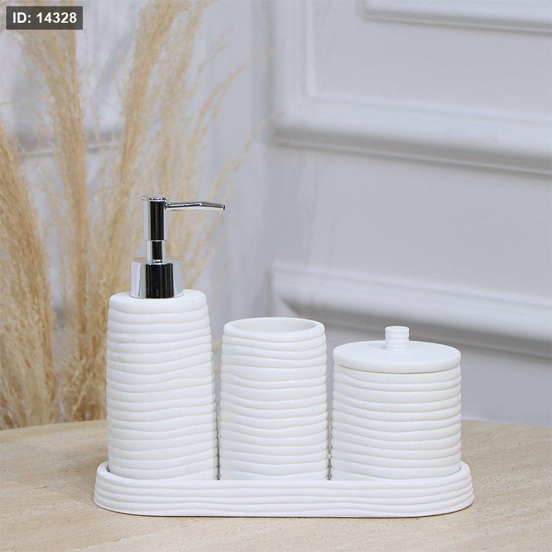 طقم /4 صينية بيضاوي +مصبنة+ كاسة + علبة بغطا جبص ابيض محزز بالعرض EL177/13 =ت.ش3