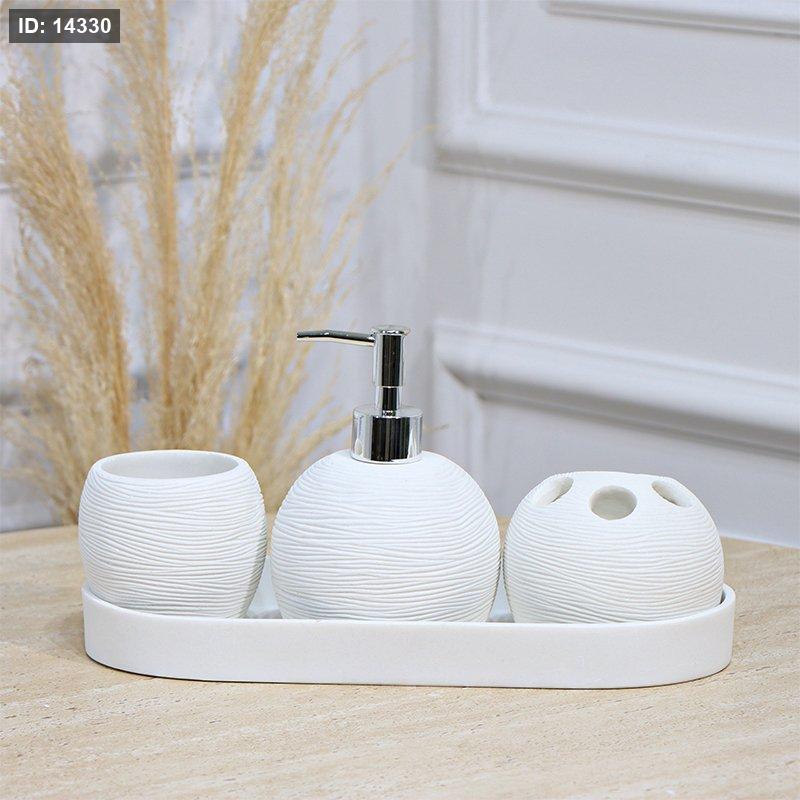طقم/3 صينية بيضاوي +مصبنة +2كاسة جبص ابيض محزز EL177/15 =ت.ش3