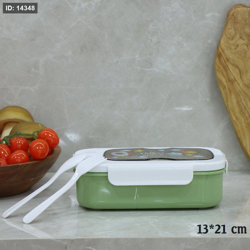 لانش بوكس بلاستك 21*13سم ملون غطا مرسم مع شوكة ومعلقة EL82/8 =ت.ش3
