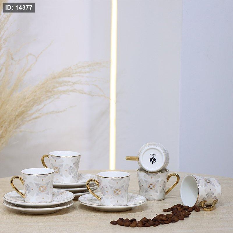 طقم فناجين قهوة 6/6 بورسلان بيج مرسم رمادي 5053-6S-1934-2G ++ع.ج