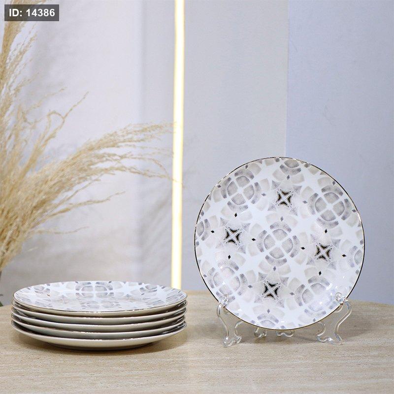 طقم صحون /6 فواكة 8"بورسلان بيج مرسم رمادي YJ8092-1934-2G ++ع.ج