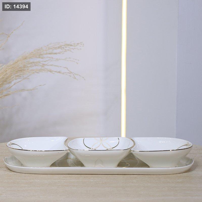 طقم مكسرات /4 صينية + 3صحون بورسلان بيج مخطط بني 5158-1G-1954-S4 ++ع.ج