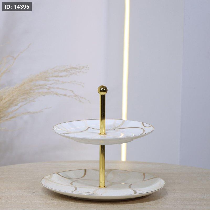 مضيفة مدور 2طبقة بورسلان بيج مخطط بني YJ8092-2-1G-1954 ++ع.ج