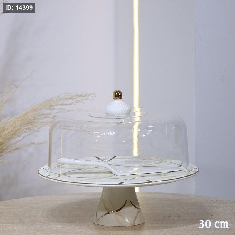 جاط كيك مدور برجل 30سم بغطا اكرلك بورسلان بيج مخطط بني مع مجراد 4697-1G-1954-12.25 ++ع.ج