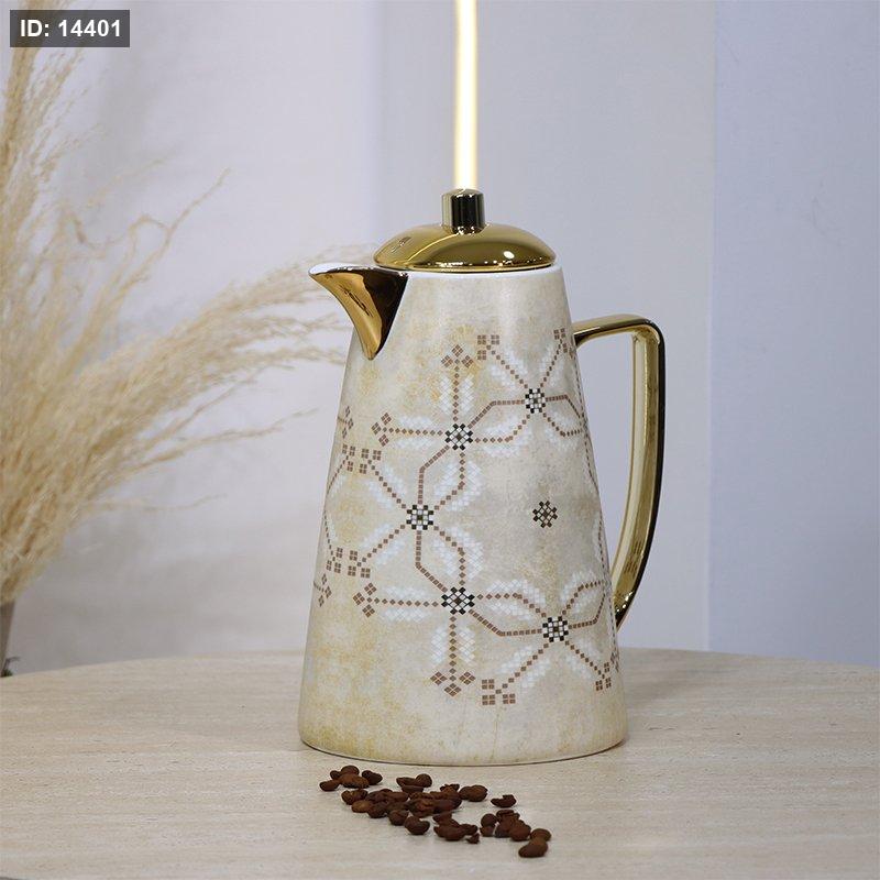 تيرموس قهوة بورسلان ابيض وكريمي مزخرف 5211-1953-1G ++ع.ج