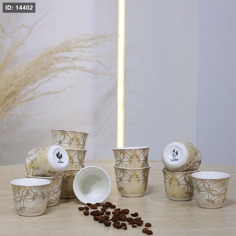 طقم فناجين قهوة سادة/12 بورسلان كريمي مزخرف 4925-12-1953-1G ++ع.ج
