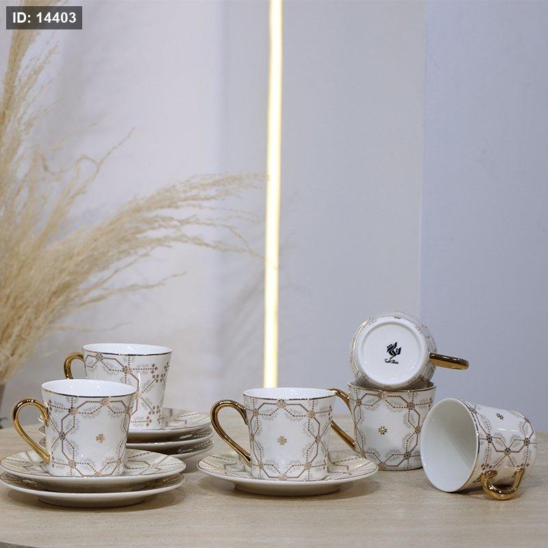 طقم فناجين شاي6/6 بورسلان ابيض وكريمي مزخرف 5053-6L-1953-1G ++ع.ج