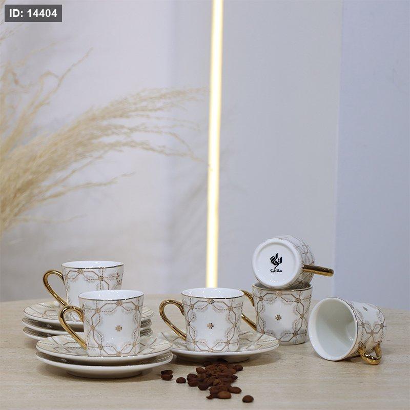 طقم فناجين قهوة 6/6 بورسلان ابيض وكريمي مزخرف 5053-6S-1953-1G ++ع.ج