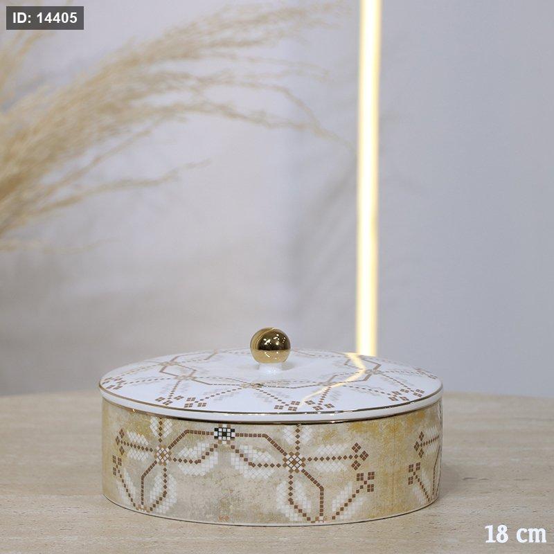 مضيفة مدور 18سم بورسلان ابيض وكريمي مزخرف 45031-M-1953-1G ++ع.ج