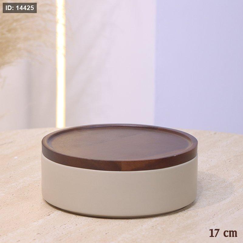 مضيفة بورسلان 17CMمدور بيج ماط غطاء خشب بني غامق YM1012 ++ع1