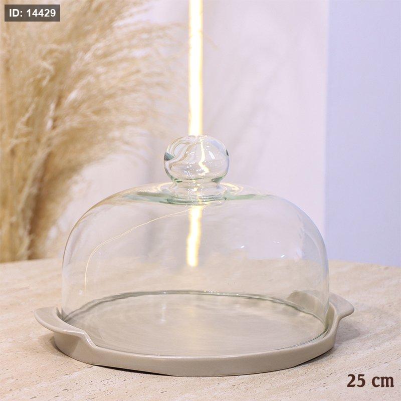 جاط كيك بورسلان بيج ماط 25CM غطاء زجاج YM23340 ++ع1
