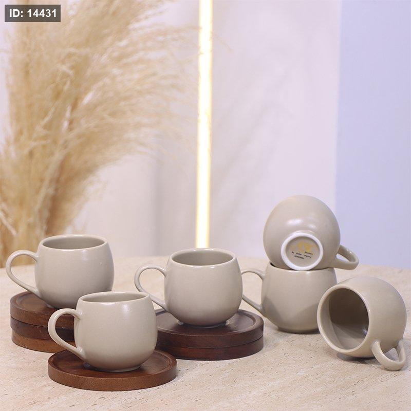 طقم فنجان قهوة 6/6 بورسلان بيج ماط صحن خشب بني غامق YM2561 ++ع1