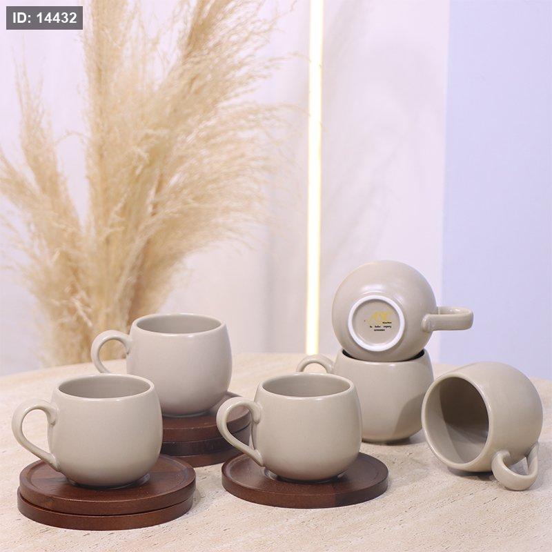 طقم فنجان 6/6 شاي بورسلان بيج ماط صحن خشب بني غامق YM2561L ++ع1