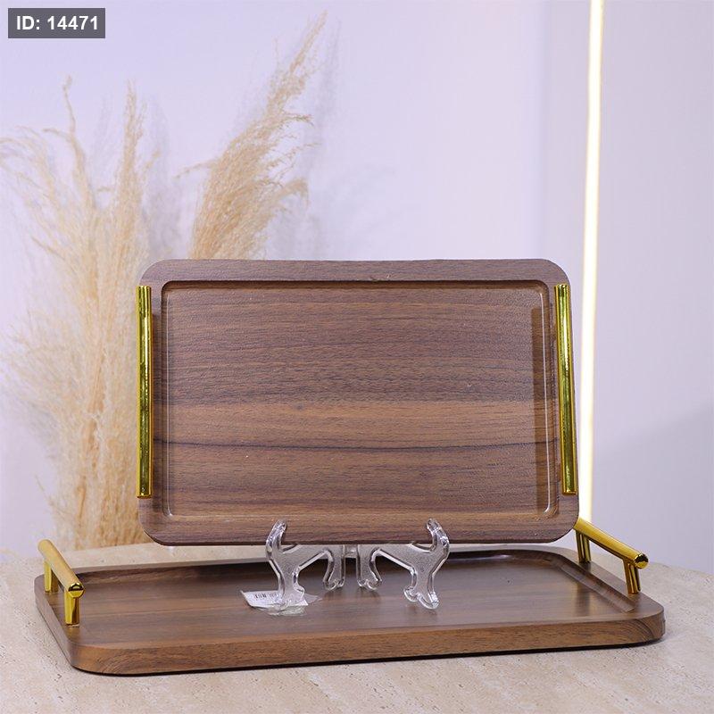 طقم صواني/2 خشب مستطيل بيدين ذهبي EL185/1 =س26