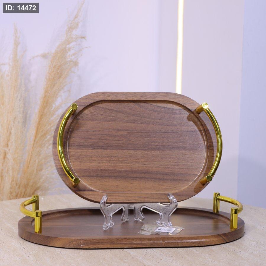 طقم صواني/2 خشب بيضاوي بيدين قوس ذهبي EL185/2 =س26