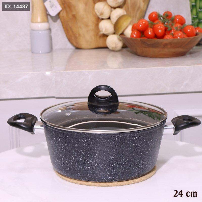 طنجرة جرانيت 24سم اسود غطا زجاج A2/9 =رم8