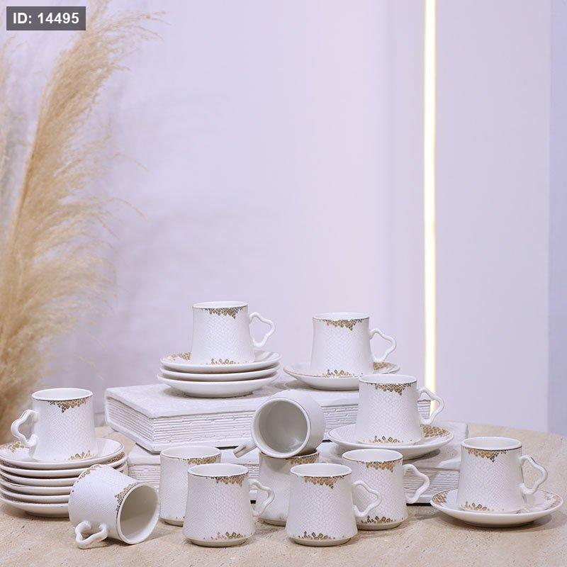 طقم فناجين قهوة 12/12 بورسلان ابيض مرسم مبزر خلية نحل مذهب ع.كرتون C169 ++ع2