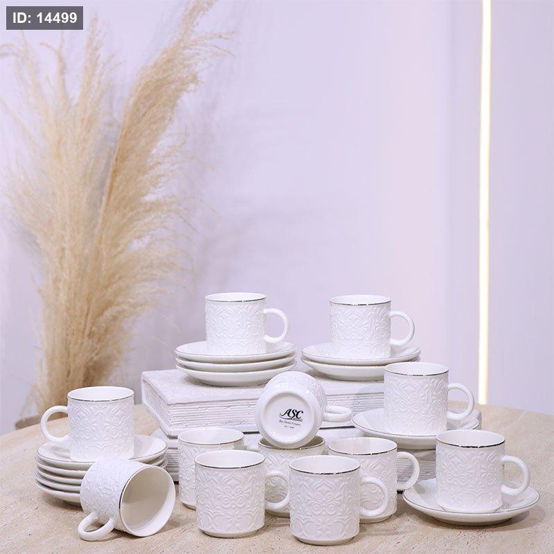 طقم فناجين قهوة 12/12 بورسلان ابيض مرسم مزخرف ع.كرتون C024 ++ع2