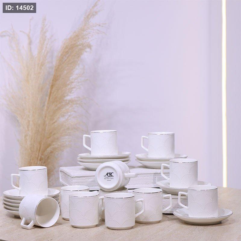 طقم فناجين قهوة 12/12 بورسلان ابيض مرسم محار ع.كرتون C042 ++ع2