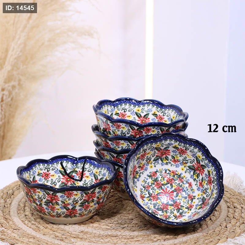 سلطية بورسلان خزف 12سم شكل وردة ت.ك6 اطار كحلي B178/4 وجه ورد بيج وزهري واخضر ++ZW