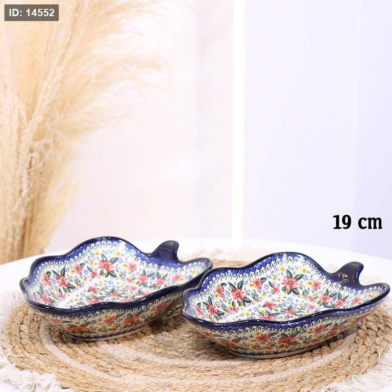 صحن بورسلان خزف 19سم شكل قارب ت.ك2 اطار كحلي B195 وجه ورد بيج وزهري واخضر ++ZW