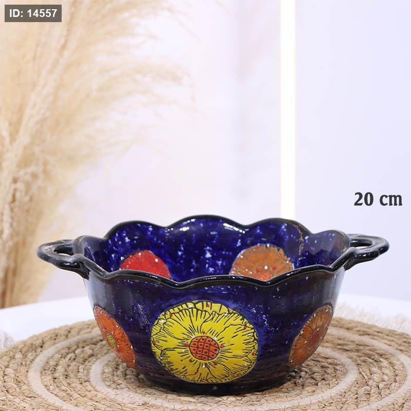 جاط مدور بورسلان خزف 20سم كحلي اطار وردة SH002/10 مرسم ورد كبير بيدين ++ZW