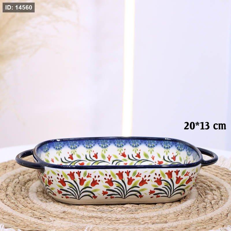 بايركس بورسلان خزف 20*13سم اطار كحلي B165 مرسم ورد سنبلات احمر ++ZW
