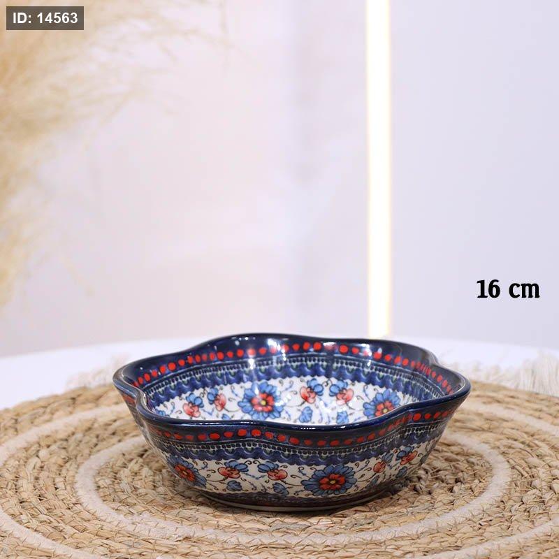 صحن بورسلان خزف 16سم شكل نجمة ت.ك2 اطار كحلي B196 مرسم ورد ازرق كبير ++ZW