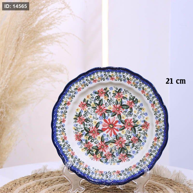 صحن جور بورسلان خزف 21سم شكل وردة ت.ك2 اطار كحلي B181/8 وجه ورد بيج وزهري واخضر ++ZW
