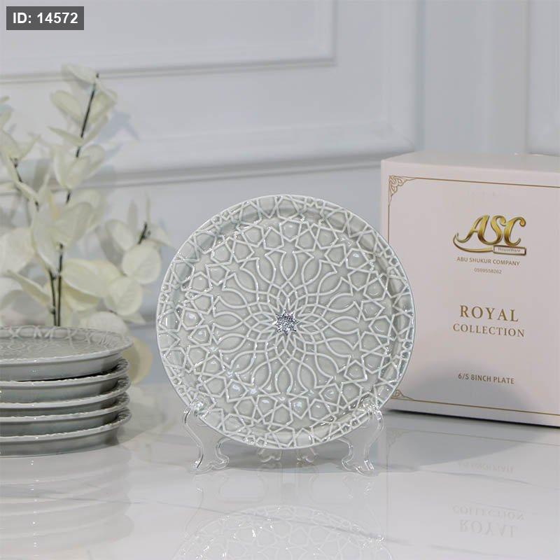 طقم/6 صحون فواكة بورسلان سكني YP08-6/S-GREY BLUE مزخرف اندلسي ++ZW1