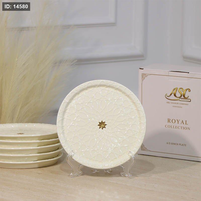 طقم/6 صحون فواكة بورسلان بيج YP08-6/S-BEIGE مزخرف نجمة ++ZW1