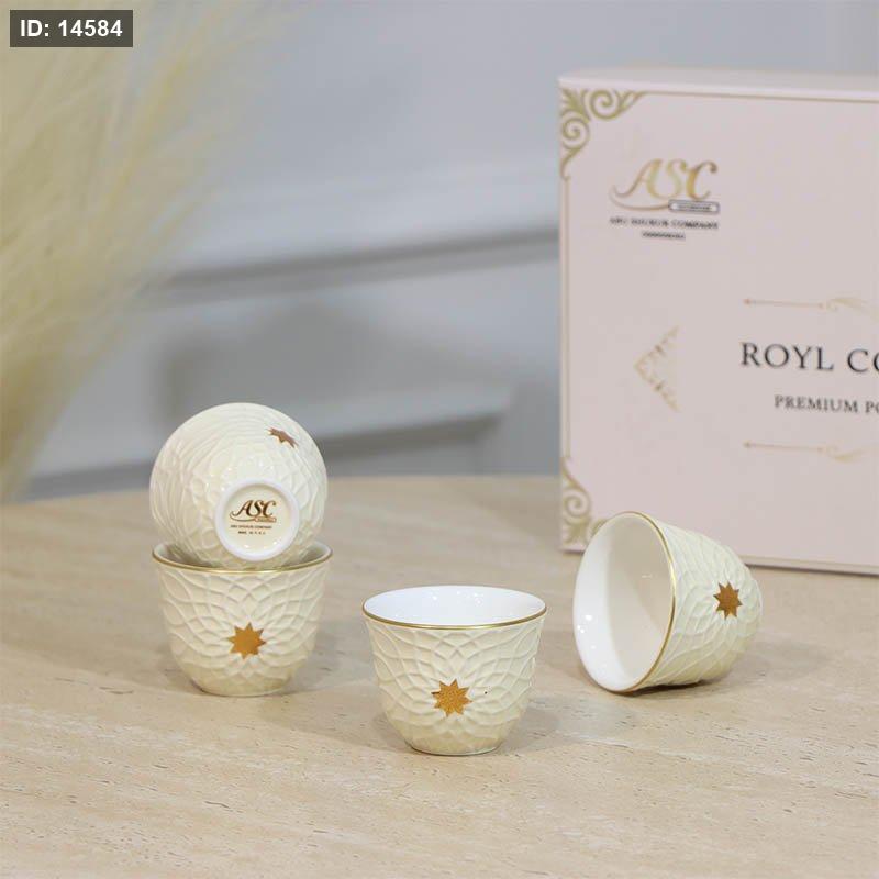 طقم فناجين سادة/12 بورسلان بيج LYB12/S-BEIGE مزخرف نجمة ++ZW1