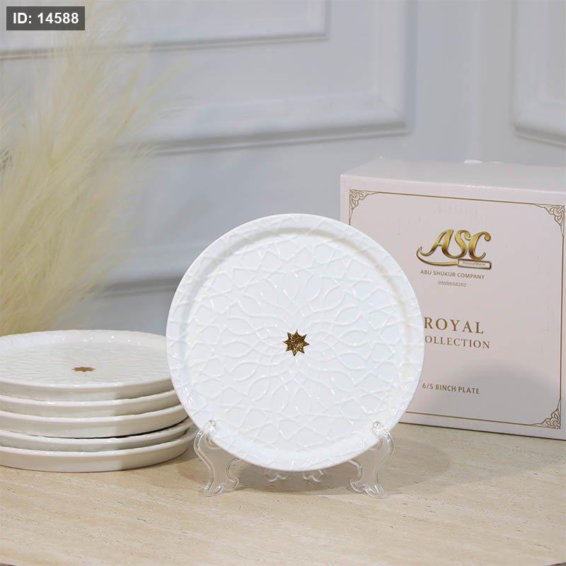 طقم/6 صحون فواكة بورسلان ابيض YP08-6/S-WHITE مزخرف نجمة ++ZW1