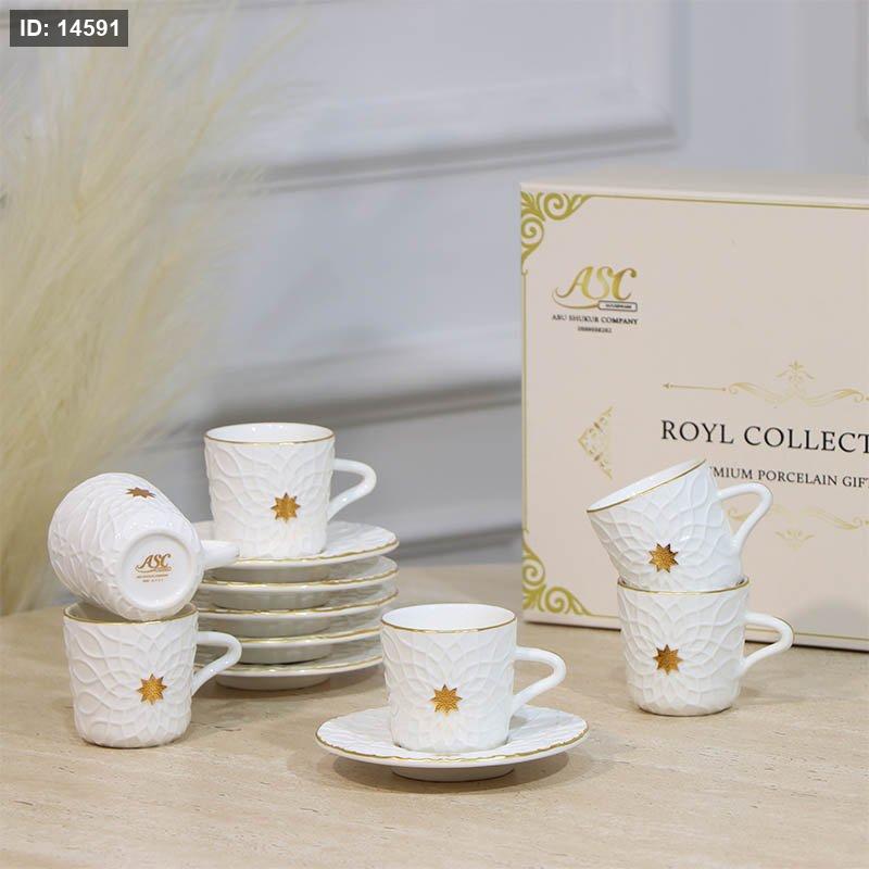 طقم فناجين قهوة 6/6 بورسلان ابيض ST118B-6/S-WHITE مزخرف نجمة ++ZW1