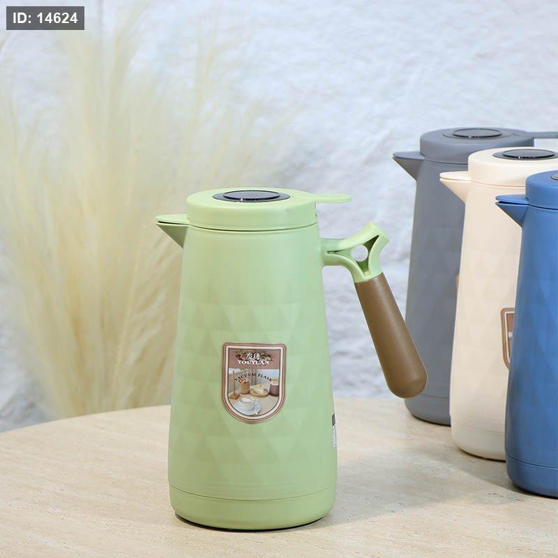 تيرموس غطا ضغط بلاستك 1 لتر مرسم بقلاوة ملون يد بلاستك خشبي Y102 ++م.د