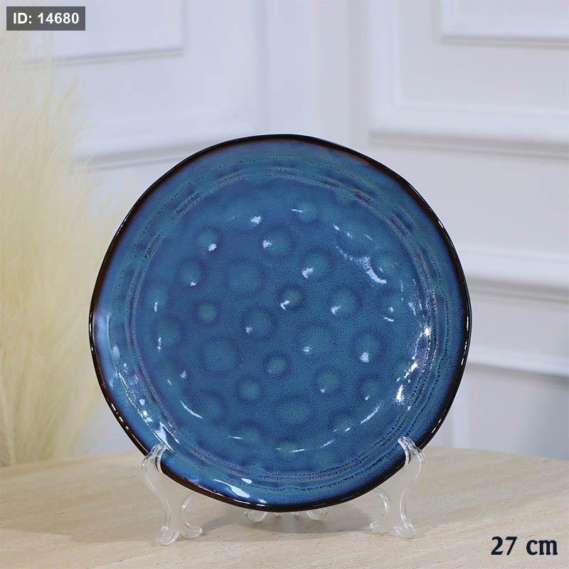 صحن سفرة بورسلان صفح 27 سم اسود وجه دوائر كحلي A35/23 =ع1