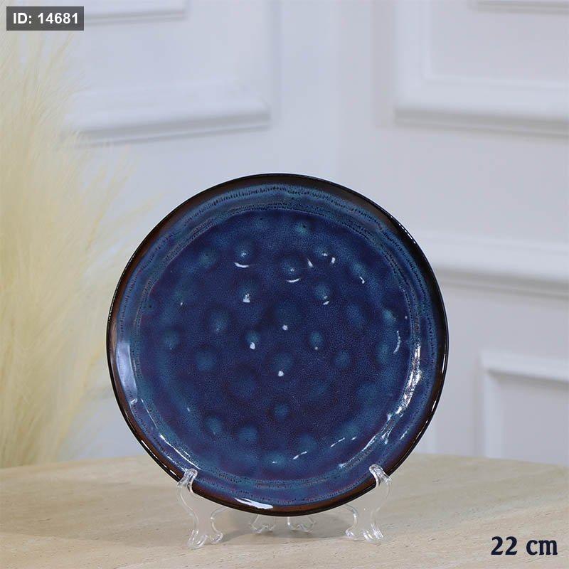 صحن سفرة بورسلان صفح 22سم اسود وجه دوائر كحلي A35/24 =ع1