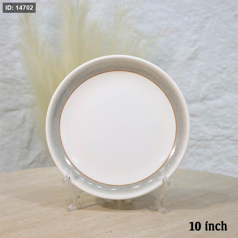 صحن مدور جور 10" ميلامين ابيض لميع اطار موشح سكني A44/7 =ع1