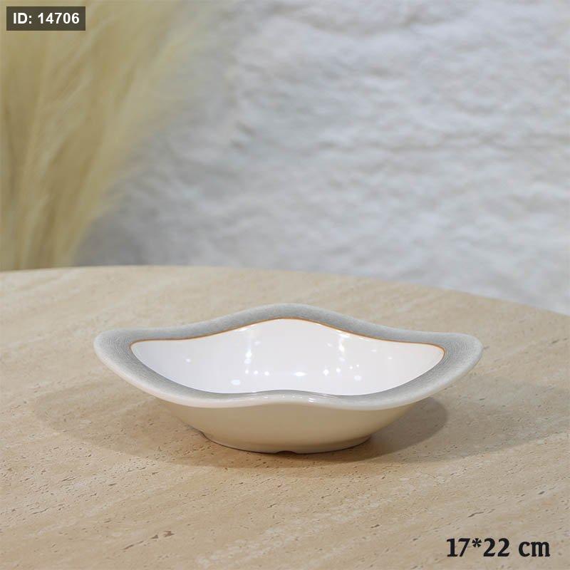 صحن مستطيل 22*17سم اطار معرج ميلامين ابيض لميع اطار موشح سكني A44/11 =ع1