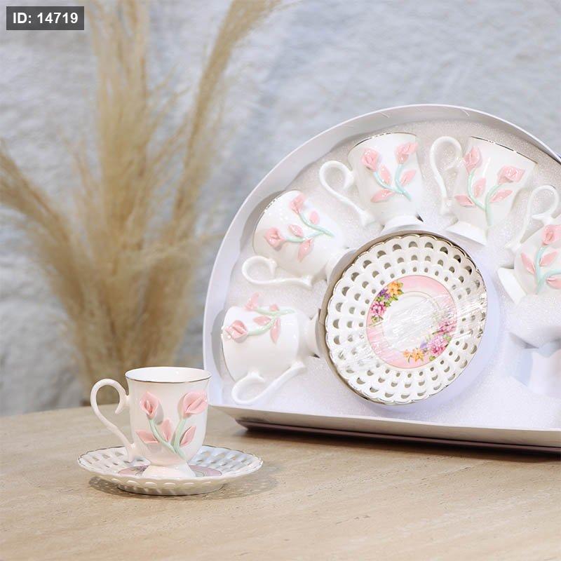 طقم فناجين قهوة 6/6 بورسلان ابيض بكلة وردة علبة قوس A34/4 =ع1