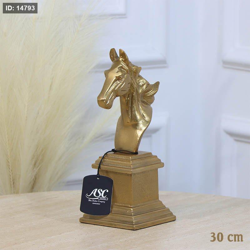 تحفة شكل حصان 30سم ذهبي GD-24001 قاعدة مربع نحاس هندي %ه11