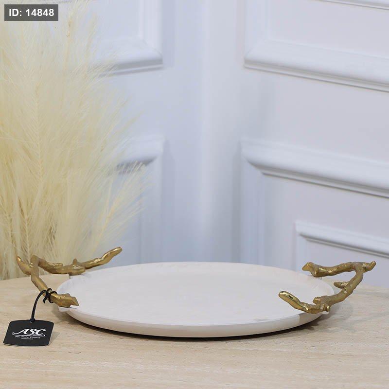 صينية مدور 31سم ابيض WTG-26131B بيدين جذع شجرة نحاس هندي %ه11