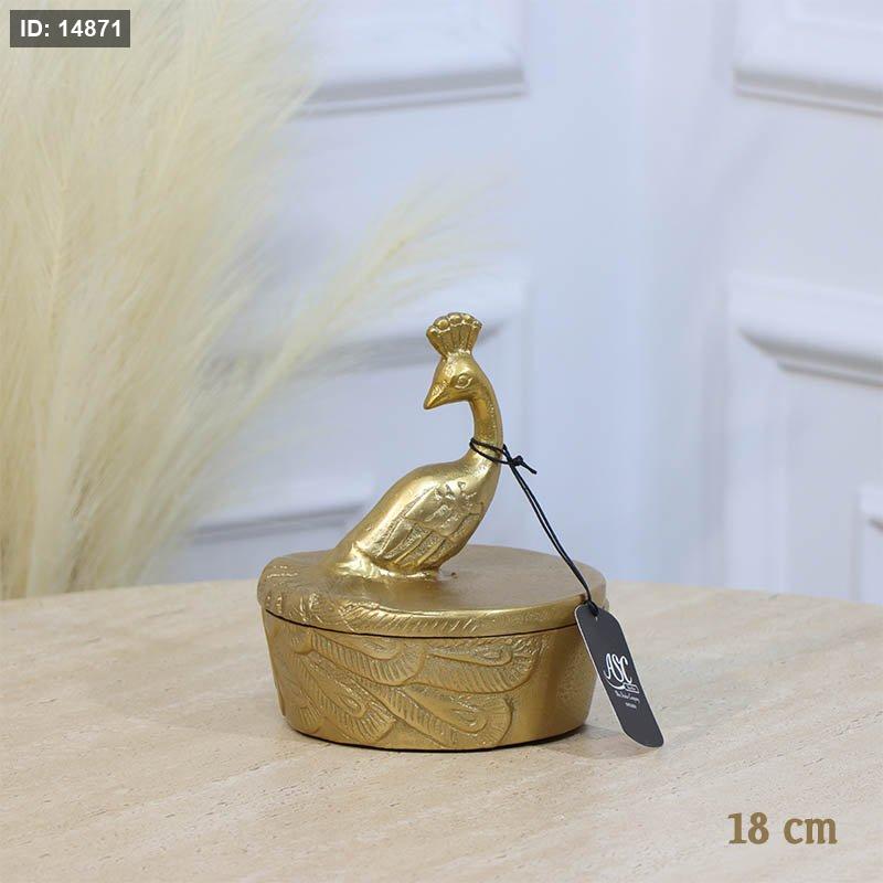 مضيفة مدور 18سم ذهبي GD-25453B غطا مسكة طاووس نحاس هندي %ه11