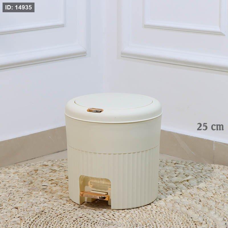 سطل مهملات دعسة بلاستك 26سم بيج مدور محزز A59/10 =ع2