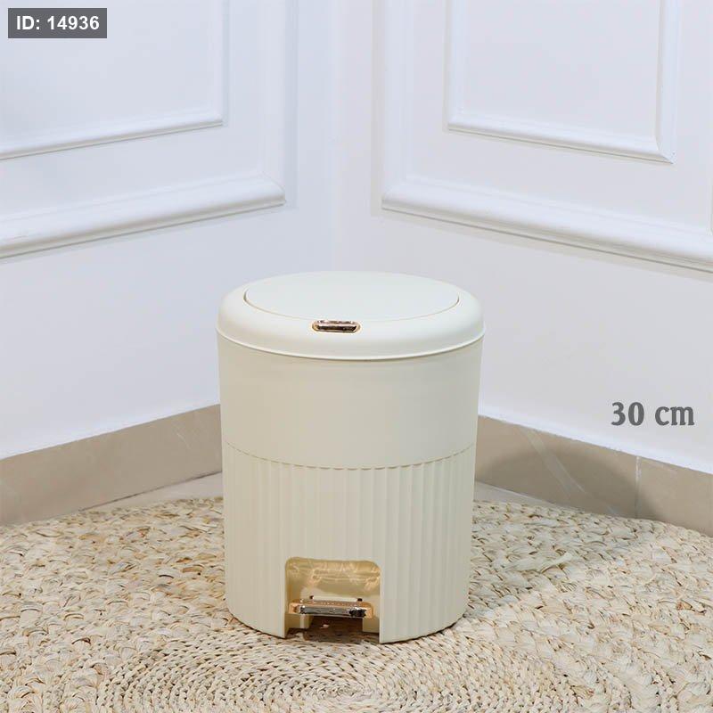 سطل مهملات دعسة بلاستك 30سم بيج مدور نصف محزز A59/11 =ع2