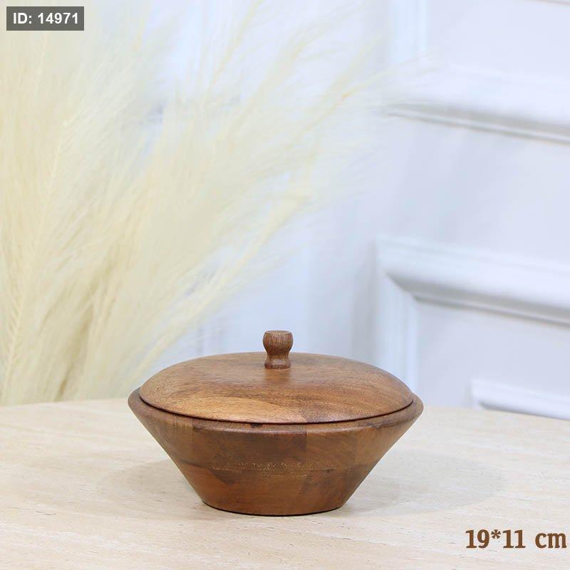 مضيفة خشب هندي 19*11سم مدور بغطا HO20017 %ه12