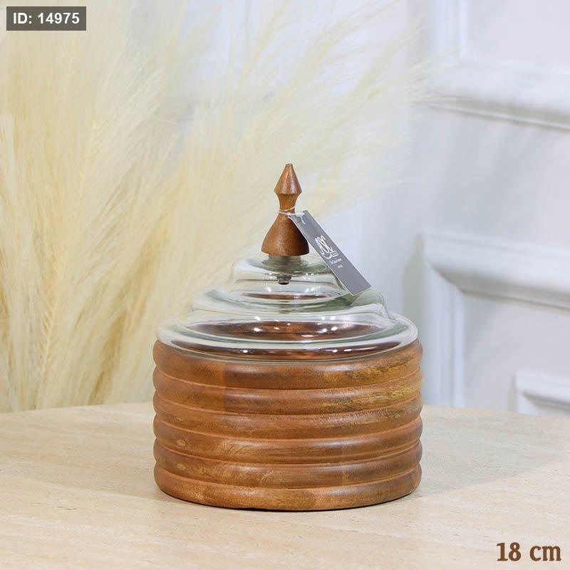 مضيفة خشب هندي مدور جور 18سم محزز حلقات غطا قبة زجاج HO20002 %ه12