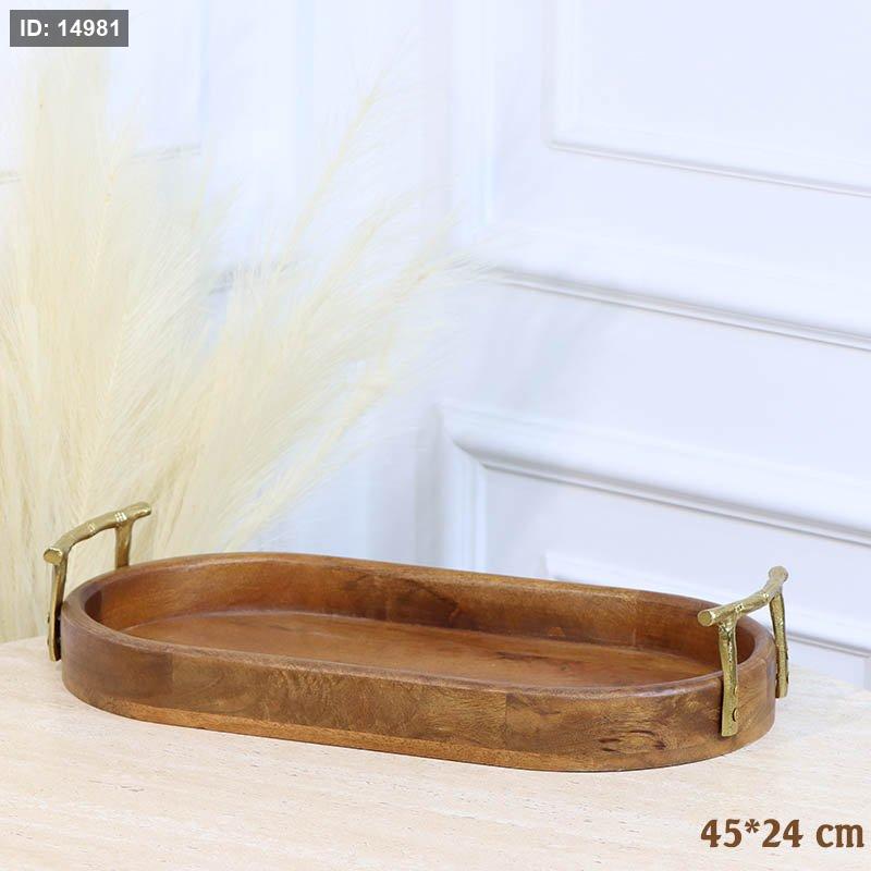 صينية خشب هندي 45*24سم بيضاوي يدين جذع شجرة نحاس HO592555 %ه12