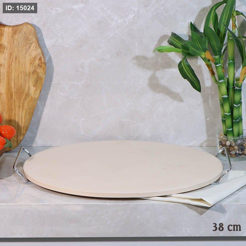 صينية بيتزا فخار مدور 38سم قاعدة ستانلس ستيل A107/6 =ع3